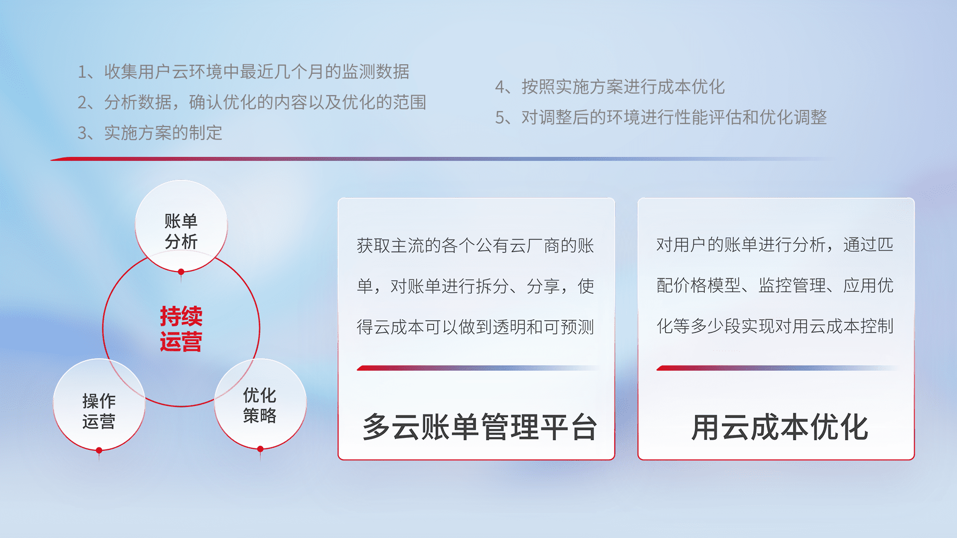 运用智能化工具分析云资源,,,提供日常费用可视化工具,,自动账单拆分,,,,成本优化云上费用,,,,降本增效。。